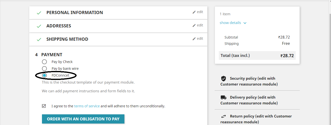 After installed Prestashop plugin follow Commerce Connect Plugin configuration process and fill all required felids which is given by Commerce Connect and save the configuration.On checkout page Commerce Connect payment option will be enabled for payment